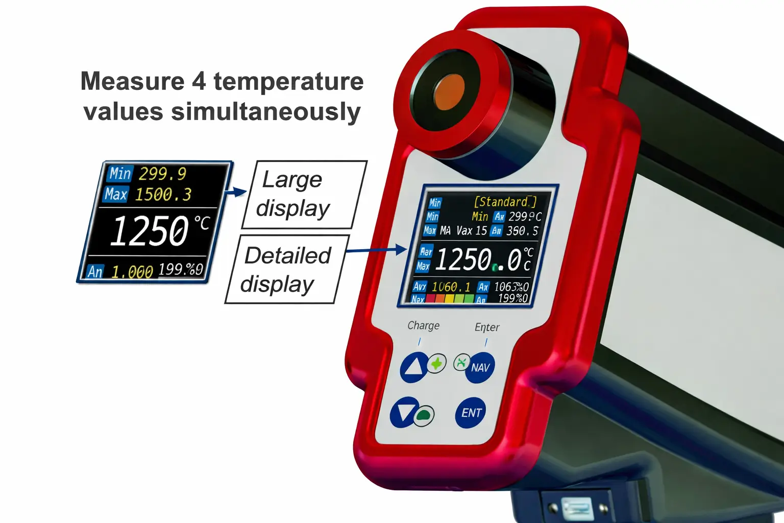 With ultra-fast response times under 1 ms, high optical resolution, and focusable optics capable of measuring from close range to distances up to 10 meters, the device ensures precise and reliable results. The integrated green laser targeting system and through-lens viewfinder allow accurate aiming even on glowing hot surfaces.